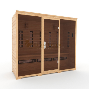 Инфракрасная сауна из кедра представляет собой кабинку с ик-нагревателями. Главное отличие такой кабины от финской парной или классической бани заключается в прогреве тела, а не воздуха. Внутренний прогрев тканей считается полезным и щадящим, за счет чего в инфракрасной кабине могут принимать лечебные процедуры даже дети и пожилые люди.