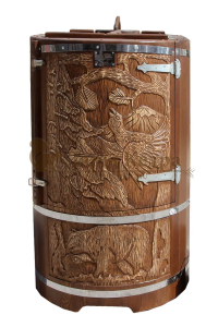 Художественное оформление на лицевой части, сбоку или на всей площади кедровой бочки по вашему эскизу.
