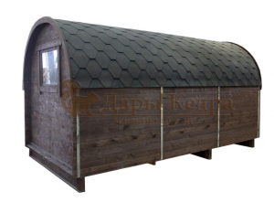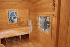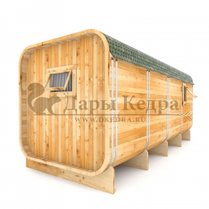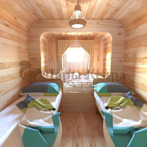 Домик подходит для дачного использования в теплое время года или обустройства загородных баз отдыха. Его можно разграничить на две зоны и использовать как кухню и спальное помещение. Домик оборудован увеличенным окном, четырьмя лежаками из кедра, вешалкой и полкой из кедра. Для удобства пользования кемпинг дом можно укомплектовать верандой с лавочками или козырьком.