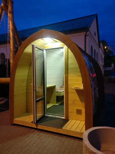Покупали такой комплект для дачи, установили в комнате отдыха в бане. Удобно очень, когда народу много в семье и все хотят попариться. Дети, кстати, предпочитают больше греться в бочке, чем в парной бани.